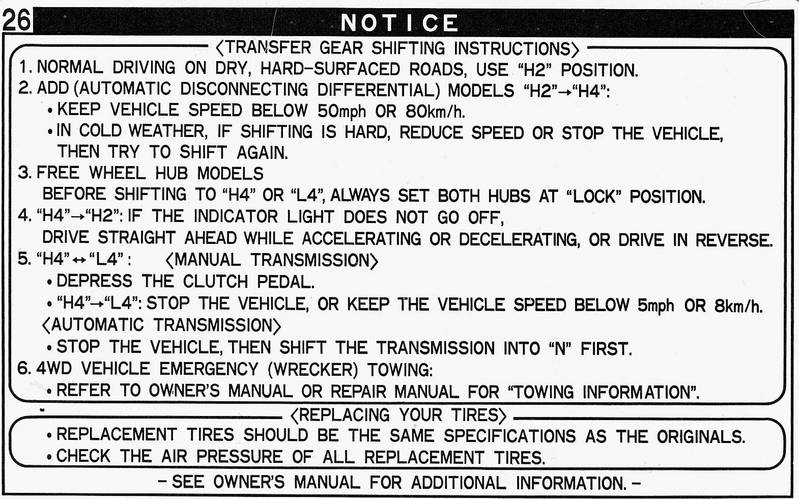 position, four-wheel drive):